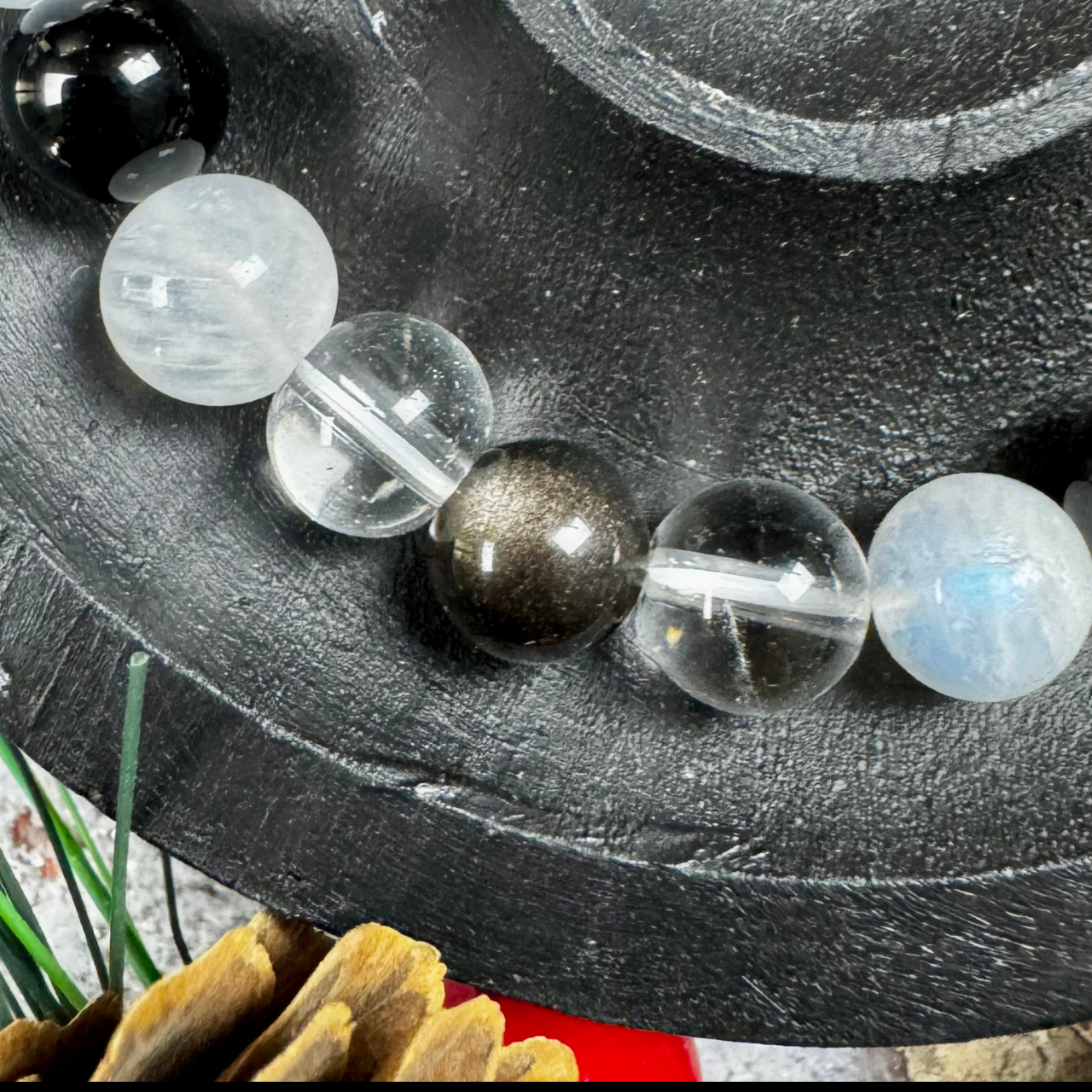 • Obsidienne argentée – Protection douce, lucidité dans l’ombre et accompagnement des traversées émotionnelles.